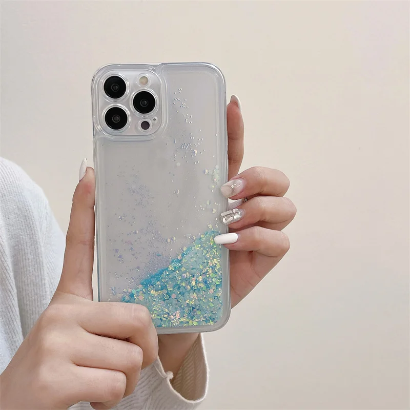 Glow Dark Luminous Liquid Sand Glitter Phone Case for iPhone 14 15 Pro Max 16 13 12 Soft Shell Luxury Brilliant Quicksand Cover Hood Carcasas Coque