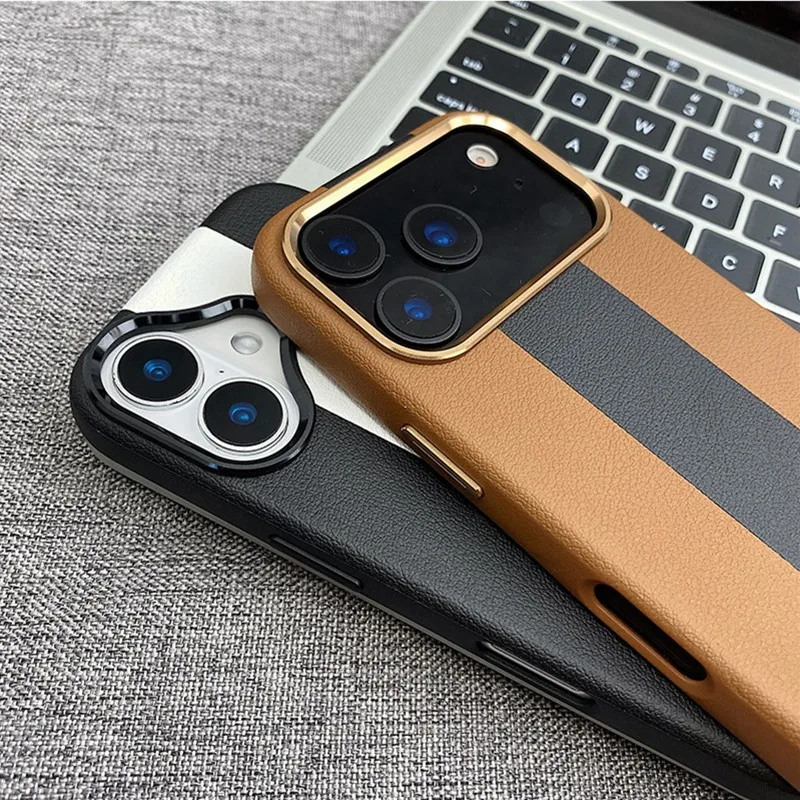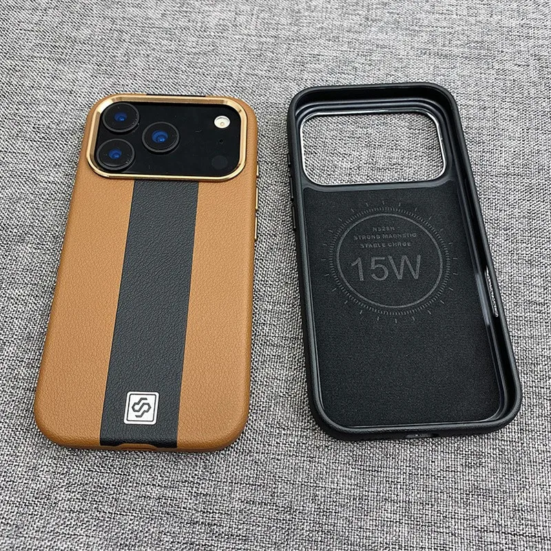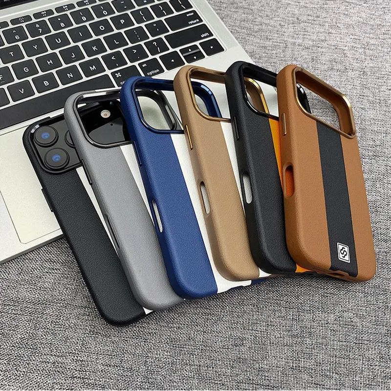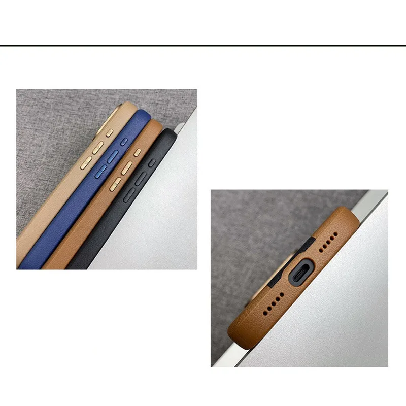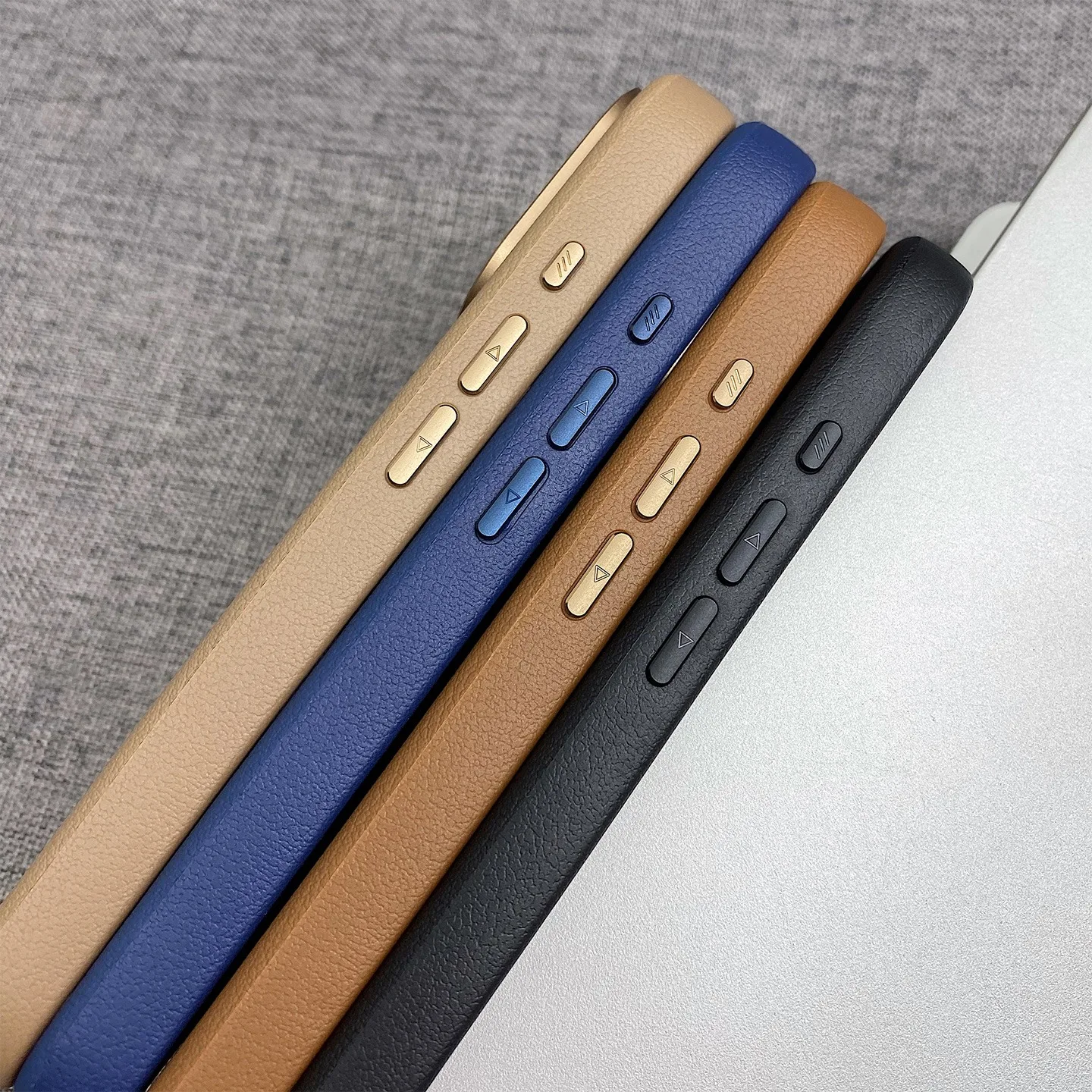 Premium Leather Magnetic iPhone 17 16 15 14 Pro Max Air Metal Buttons Lens Protection Cover